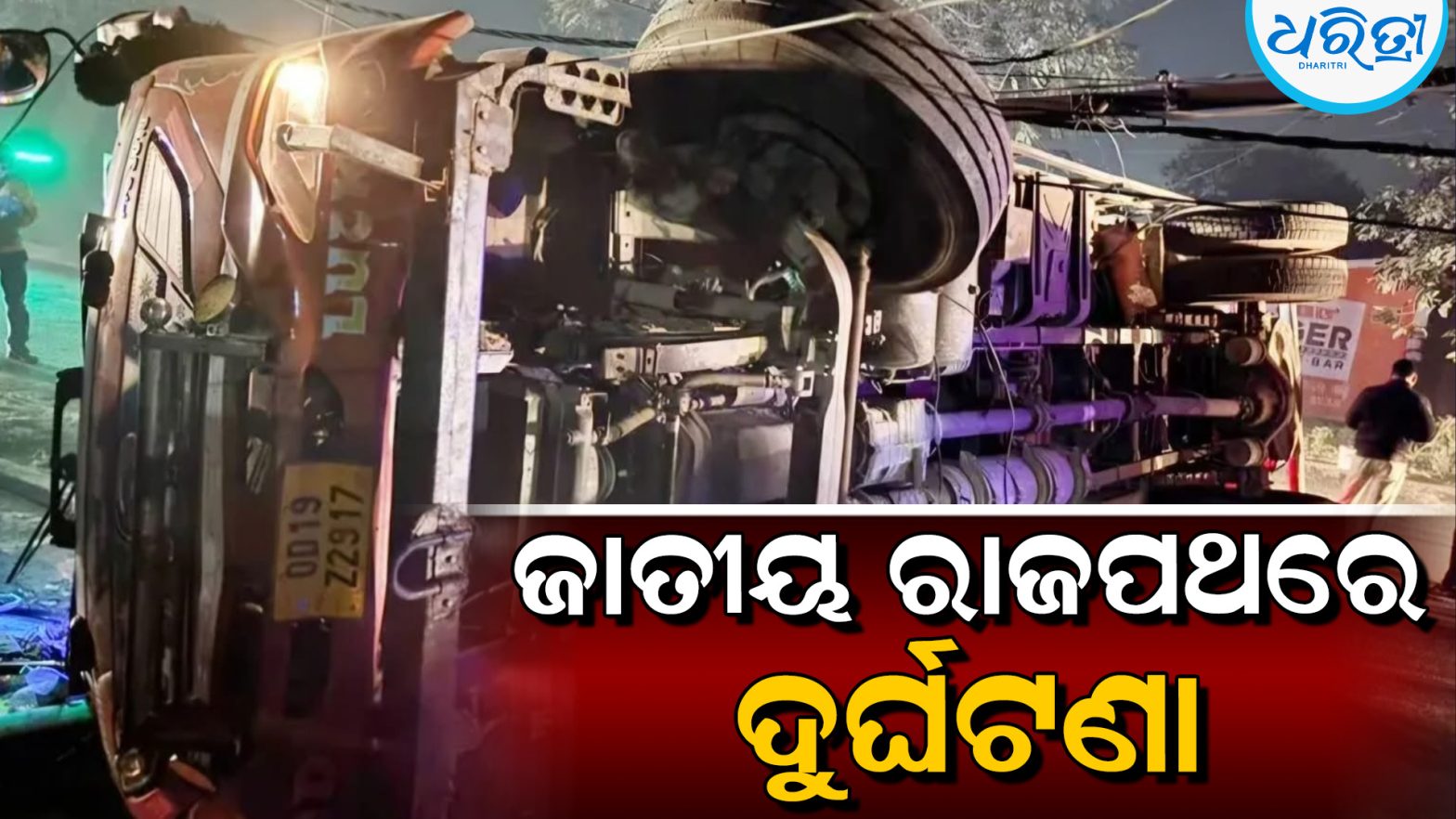 ବିଦ୍ୟୁତ୍ ଖୁଣ୍ଟରେ ପିଟିହୋଇ ଓଲଟିଲା ଟ୍ରକ