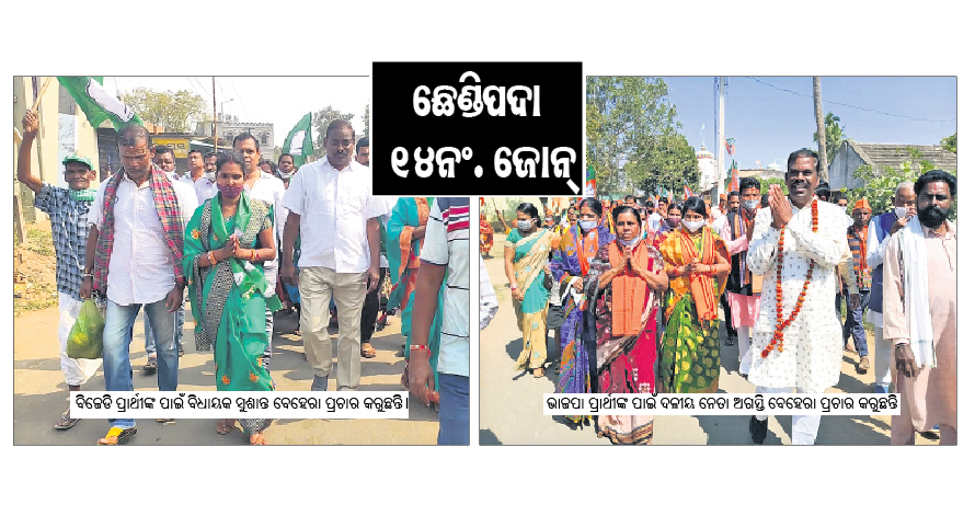 ଛେଣ୍ଡିପଦା,୧୭।୨(ସ୍ବ.ପ୍ର.): ଅନୁଗୋଳ ଜିଲା ଛେଣ୍ଡିପଦା ବ୍ଲକର ୩୪ ପଞ୍ଚାୟତ ଓ ୪ଟି ଜିଲା ପରିଷଦ (ନଂ. ୧୪, ୧୫, ୧୬, ୧୭) ଜୋନ୍ରେ ଆସନ୍ତା ୧୮ ତାରିଖରେ ଭୋଟ ଗ୍ରହଣ ହେବ। ଏଥିପାଇଁ ବୁଧବାର ପ୍ରଚାର କାର୍ଯ୍ୟ ଶେଷ ହୋଇଛି।...