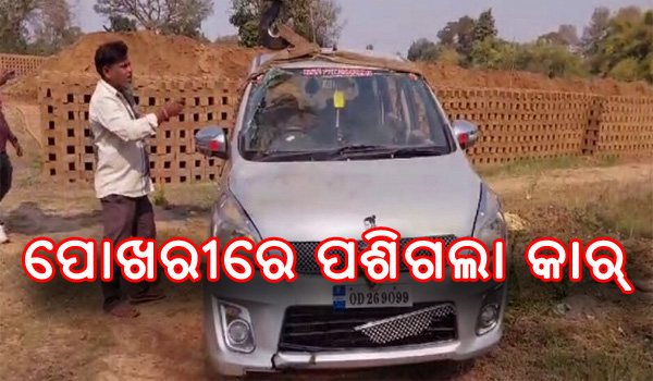 ପୋଖରୀ ଭିତରେ ପଶିଗଲା ଗଞ୍ଜେଇ ଭର୍ତ୍ତି କାର୍