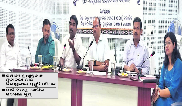 ବଲାଙ୍ଗୀର ଅଫିସ,୧୧ା୩: ବଲାଙ୍ଗୀର ଜିଲା ଜରୁରୀକାଳୀନ ଅପରେଶନ ସେଣ୍ଟର ଓ ଜିଲା ବିପର୍ଯ୍ୟୟ ପରିଚାଳନା ପ୍ରାଧିକରଣ ପକ୍ଷରୁ ସ୍ଥାନୀୟ ଜିଲାପାଳ କାର୍ଯ୍ୟାଳୟ ସମ୍ମିଳନୀ କକ୍ଷରେ ଶୁକ୍ରବାର ସମ୍ଭାବ୍ୟ ଗ୍ରୀଷ୍ମପ୍ରବାହ ମୁକାବିଲା ପାଇଁ ଜିଲାସ୍ତରୀୟ ପ୍ରସ୍ତୁତି ବୈଠକ ଅନୁଷ୍ଠିତ ହୋଇଯାଇଛି ା...