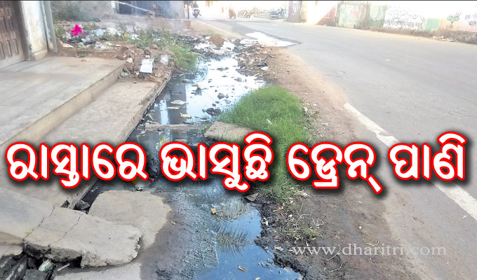 ରାସ୍ତାରେ ଭାସୁଛି ଡ୍ରେନ୍ ପାଣି