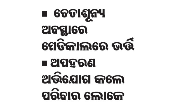 ବଲାଙ୍ଗୀର ଅଫିସ,୨୪ା୮: ବରଗଡ଼ ଜିଲା ଗାଇସିଲେଟ ଥାନା ଅନ୍ତର୍ଗତ ଏକ ଗ୍ରାମର ଜଣେ ଯୁକ୍ତଦୁଇ ଛାତ୍ରୀ (୧୬)ଙ୍କୁ ସୋମବାର ଅପହରଣ କରାଯାଇଥିଲା। ସମ୍ପୃକ୍ତା ଅପହୃତା ନାବାଳିକା ଛାତ୍ରୀଙ୍କୁ ହାତଗୋଡ଼ ବନ୍ଧା ଅବସ୍ଥାରେ ମଙ୍ଗଳବାର ସକାଳେ ଉଦ୍ଧାର କରାଯାଇଛି। ଚେତାଶୂନ୍ୟ ଅବସ୍ଥାରେ...
