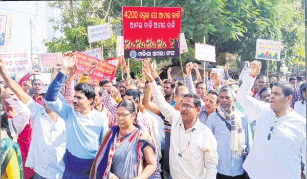 ୩ ଦଫା ଦାବିରେ ରାଜରାସ୍ତାକୁ ଓହ୍ଲାଇଲେ ୨୪୫ ଶିକ୍ଷାକର୍ମୀ