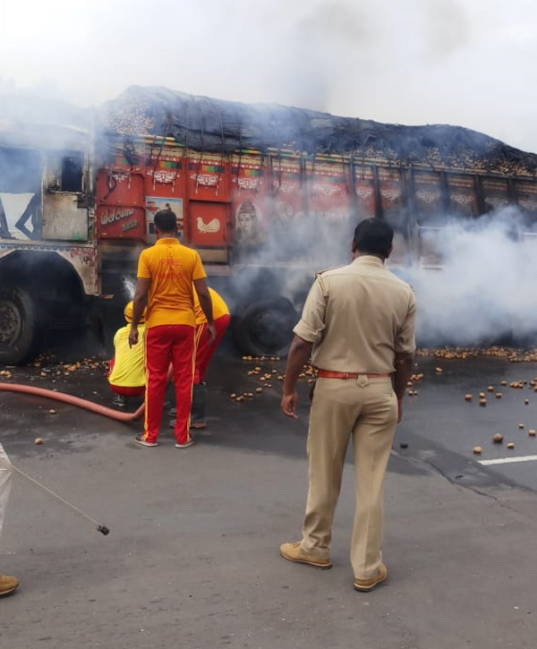ଚଳନ୍ତା ଟ୍ରକ୍ରେ ଲାଗିଲା ନିଆଁ