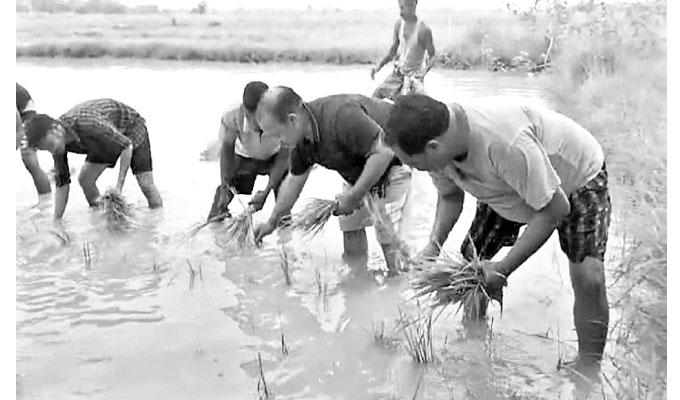 ଚାଷୀଙ୍କ ସହ ମିଶି ଧାନତଳି ରୋଇଲେ ବିଧାୟକ