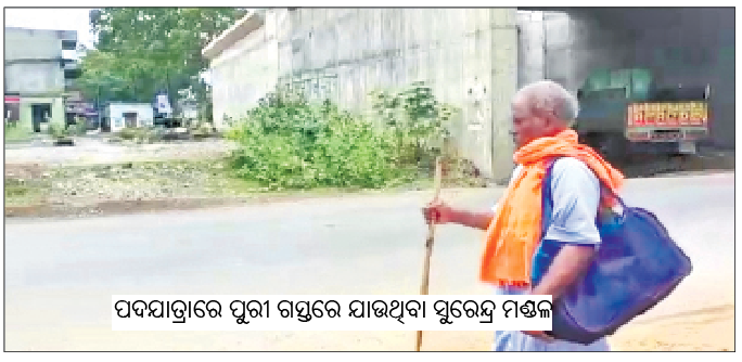 ବାଲେଶ୍ୱର ଅଫିସ,୧୯ ।୬: ବାଲେଶ୍ୱର ଜିଲା ଔପଦା ବ୍ଲକ ସାନପାଟପୁର ଗାଁର ବୃଦ୍ଧ ସୁରେନ୍ଦ୍ର ମଣ୍ଡଳ ଚାଲି ଚାଲି ଜଗା ଦର୍ଶନ ପାଇଁ ବାହାରିଛନ୍ତି। ହାତରେ କିଛି ଲୁଗାପଟା ରଖିଥିବା ବ୍ୟାଗ୍, ସାହସ କହିଲେ ଖଣ୍ଡେ ବାଡ଼ି ବ୍ୟତୀତ ଆଉ କିଛି...