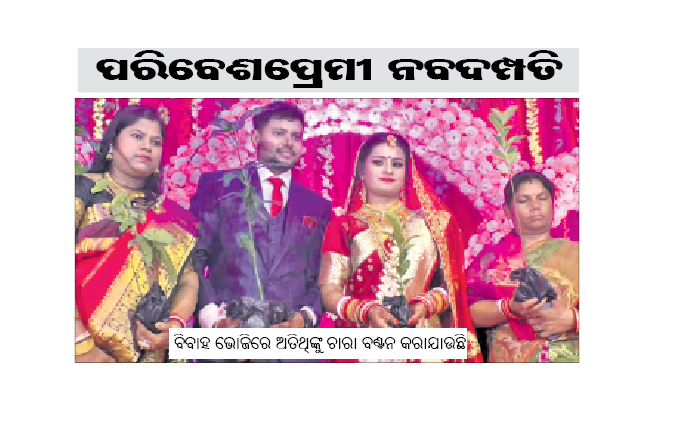 ରୂପସା,୧୫।୫(ଡି.ଏନ.ଏ.): ପରିବେଶପ୍ରେମୀ ନବଦମ୍ପତି ଅବକ୍ଷୟମୁଖି ପରିବେଶକୁ ସଜାଡ଼ିବା ପାଇଁ କରିଛନ୍ତି ପ୍ରୟାସ। ନିଜ ବିବାହ ଭୋଜି ଉତ୍ସବରେ ନିମନ୍ତ୍ରିତ ଅତିଥିଙ୍କୁ ଚାରାଗଛ ବାଣ୍ଟି ଅନ୍ୟମାନଙ୍କ ଲାଗି ଉଦାହରଣ ସାଜିଛନ୍ତି। ଏହା ଦେଖିବାକୁ ମିଳିଛି ବାଲେଶ୍ୱର ଜିଲା ବସ୍ତା ବ୍ଲକ ଗଡ଼ପଦା ପଞ୍ଚାୟତ...
