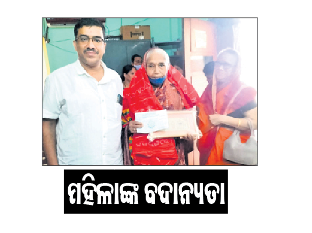 ମହିଳାଙ୍କ ବଦାନ୍ୟତା: ଶ୍ରୀମନ୍ଦିରକୁ ୨୦ଲକ୍ଷ, ବିଦ୍ୟାଳୟକୁ ୧୫ଲକ୍ଷ ଦାନ