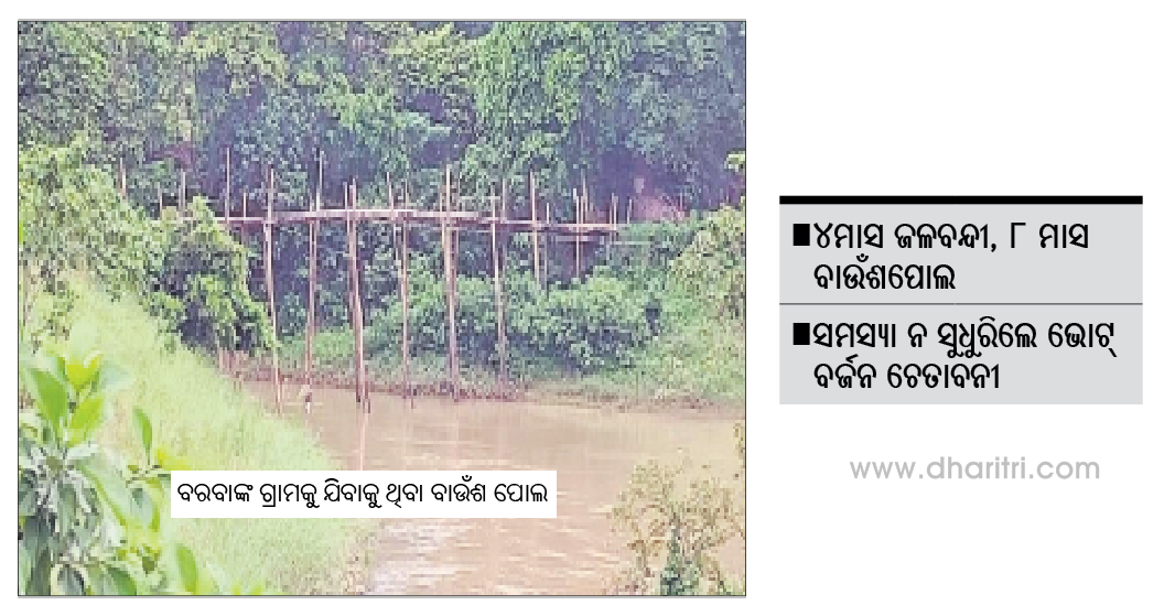 ବାଲେଶ୍ୱର ଅଫିସ, ୨୦।୧: ବାଲେଶ୍ୱର ଜିଲା ରେମୁଣା ବ୍ଲକ ବଡ଼ପାଳ ପଞ୍ଚାୟତ ମଧ୍ୟ ଦେଇ ପ୍ରବାହିତ ଗଙ୍ଗାହାର ନଦୀ ଅଞ୍ଚଳବାସୀଙ୍କ ଗମନାଗମନରେ ବାଧକ ସାଜିଛି। କାହିଁ କେଉଁ ଆବାହମାନ କାଳରୁ ବରବାଙ୍କ ଗ୍ରାମର ଶତାଧିକ ପରିବାର ନଦୀ ଉପରେ ଏକ ବାଉଁଶ...