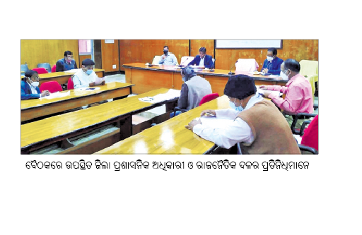 ବାଲେଶ୍ୱର ଅଫିସ,୧୭।୧: ବାଲେଶ୍ୱର ଜିଲାପାଳଙ୍କ ସଦ୍ଭାବନା ସଭାଗୃହରେ ରବିବାର ରାଜନୈତିକ ଦଳ ପ୍ରତିନିଧିମାନଙ୍କ ସହ ଜିଲା ପ୍ରଶାସନର ଆଲୋଚନା ହୋଇଥିଲା। ଜିଲାପାଳ କେ.ସୁଦର୍ଶନ ଚକ୍ରବର୍ତ୍ତୀ ଅଧ୍ୟକ୍ଷତା କରିଥିବା ବେଳେ ଜିଲା ଗ୍ରାମ୍ୟ ଉନ୍ନୟନ ସଂସ୍ଥା ପ୍ରକଳ୍ପ ନିର୍ଦ୍ଦେଶକ ରବୀନ୍ଦ୍ର କୁମାର...