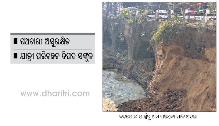 ସଜନାଗଡ଼ ବଡ଼ପୋଲ ପାର୍ଶ୍ୱ ଅତଡ଼ା ଧସିଲା