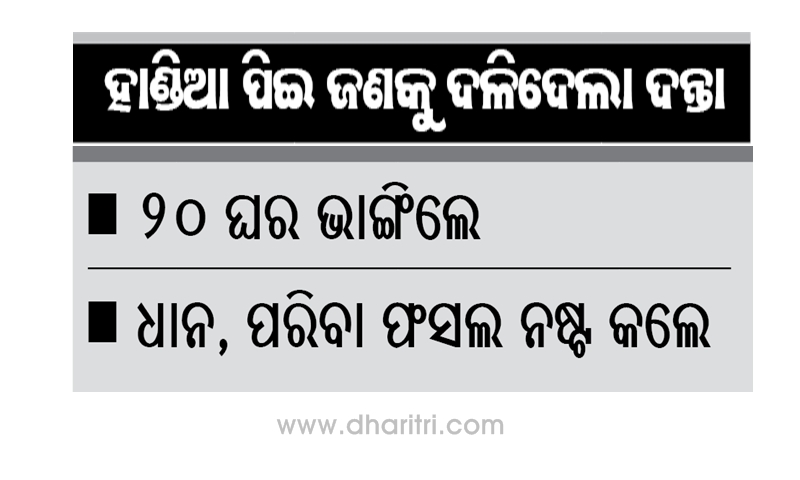 ଜଳେଶ୍ୱର, ୧୬।୧(ଡି.ଏନ.ଏ.) ବାଲେଶ୍ୱର ଜିଲା ରାଇବଣିଆ ଅଞ୍ଚଳରେ ଗତ କିଛିଦିନ ହେଲା ଝାଡଖଣ୍ଡୀ ହାତୀପଲ ଆତଙ୍କ ଖେଳାଇ ଚାଲିଛନ୍ତି। ଶନିବାର ଭୋର ସମୟରେ ଗୋଟିଏ ଦନ୍ତା ହାଣ୍ଡିଆ ପିଇ ଜଣଙ୍କୁ ଦଳି ଦେଇଛି। ଘଟଣାସ୍ଥଳରେ ବନବିଭାଗ କର୍ମଚାରୀ ପହଞ୍ଚି ହାତୀଗୁଡ଼ିକୁ ଘଉଡ଼ାଇଛନ୍ତି।...
