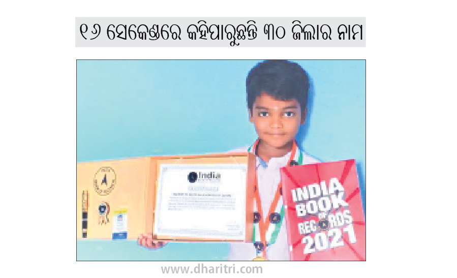 ଖଇରା, ୧୦।୧୦(ଡି.ଏନ.ଏ.): ମାତ୍ର ୧୬ସେକେଣ୍ଡରେ ଓଡ଼ିଶାର ୩୦ଟି ଜିଲାର ନାମ କହି ଇଣ୍ଡିଆ ବୁକ୍ ଅଫ ରେକର୍ଡସ୍ରେ ସ୍ଥାନ ପାଇଛନ୍ତି ବାଲେଶ୍ୱର ଜିଲା ଖଇରା ବ୍ଲକ ସାରକେଣା ଗ୍ରାମର ପ୍ରଥମେଶ ମହାପାତ୍ର। ସାରକୋଣା ଉଚ୍ଚ ପ୍ରାଥମିକ ବିଦ୍ୟାଳୟରେ ଦ୍ୱିତୀୟ ଶ୍ରେଣୀର...