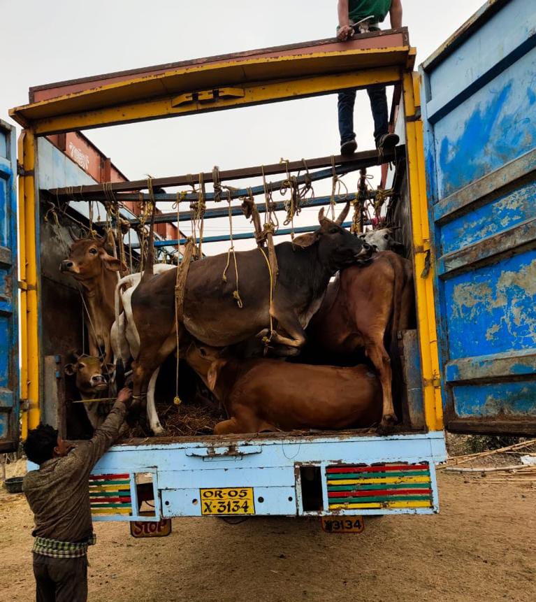 ବେଆଇନ ଗୋରୁ ଚାଲାଣ: କଣ୍ଟେନରରୁ ୧୦୨ ଉଦ୍ଧାର