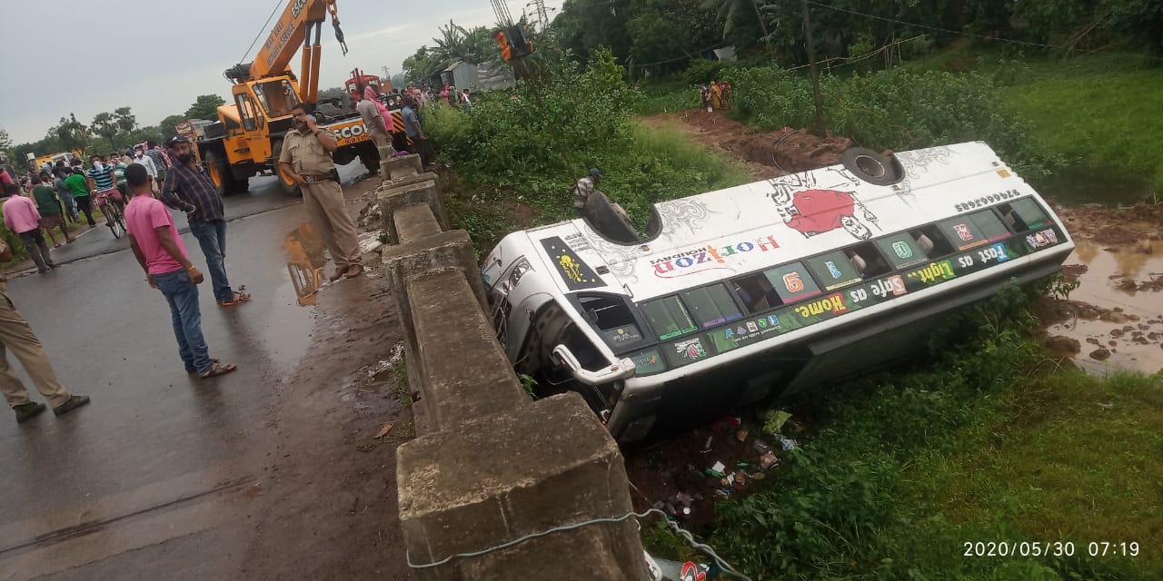 ପୋଲ ତଳକୁ ଖସିଲା ପ୍ରବାସୀ ବସ୍, ୭ଆହତ