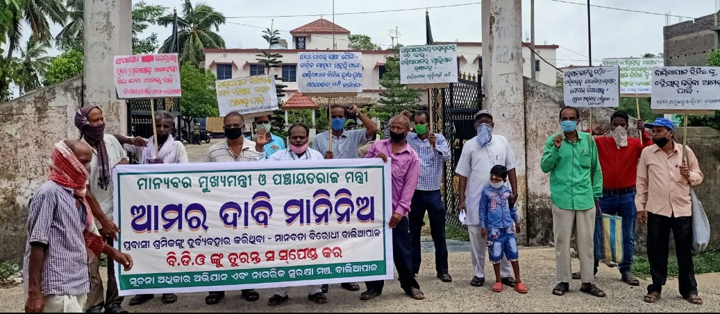 ପ୍ରବାସୀଙ୍କୁ ବିଡିଓଙ୍କ ଦୁର୍ବ୍ୟବହାର ପ୍ରସଙ୍ଗ: ବିଡିଓଙ୍କ ନିଲମ୍ବନ ଦାବିରେ ବ୍ଲକ ସମ୍ମୁଖରେ ବିକ୍ଷୋଭ