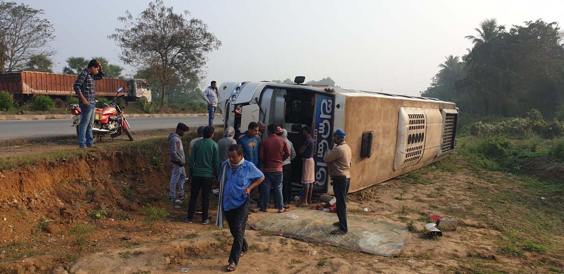 ଭାରସାମ୍ୟ ହରାଇ ଓଲଟିଲା ବସ୍, ୪୦ ଆହତ