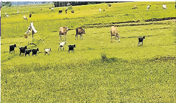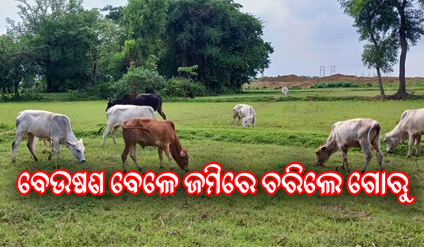 ବର୍ଷା ଅଭାବରୁ ପଡିପାରୁନି ତଳି: ବିଲରେ ଚରୁଛନ୍ତି ଗୋରୁ