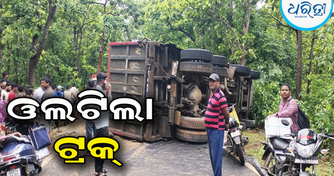 ବସ୍କୁ ସାଇଡ୍ ଦେବା ବେଳେ ଓଲଟି ପଡ଼ିଲା ବାଲି ବୋଝେଇ ଟ୍ରକ୍