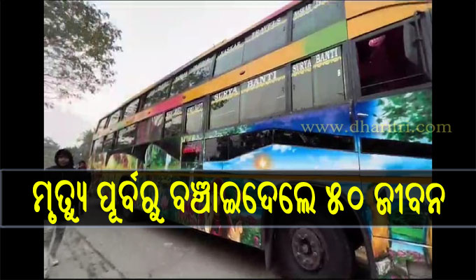 ଚଳନ୍ତା ବସ ଡ୍ରାଇଭରଙ୍କୁ ଆସିଲା ହାର୍ଟଆଟାକ୍: ଉପସ୍ଥିତ ବୁଦ୍ଧିରୁ ଅଳ୍ପକେ ବର୍ତ୍ତିଲେ ୫୦ ଯାତ୍ରୀ