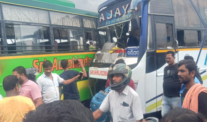 ଦୁଇ ବସ୍ ମଧ୍ୟରେ ଦୁର୍ଘଟଣା