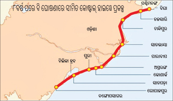 ବାଲେଶ୍ୱର ଅଫିସ, ୩୦।୫ (ମାନସ ବିଶ୍ୱାଳ): କୋଷ୍ଟାଲ ହାଇଓ୍ବେ ନିର୍ମାଣ ହେଲେ ସମୁଦ୍ର ତଟବର୍ତ୍ତୀ ଅଞ୍ଚଳରେ ସାମାଜିକ ଓ ଅର୍ଥନୈତିକ ଅଭିବୃଦ୍ଧି ଘଟିବ। ଏହି ଲକ୍ଷ୍ୟରେ କେନ୍ଦ୍ର ସରକାରଙ୍କ ପକ୍ଷରୁ କୋଷ୍ଟାଲ୍ ହାଇୱେ ନିର୍ମାଣ ପ୍ରକଳ୍ପ ଯୋଜନାର ଘୋଷଣା କରାଯାଇଥିଲା।...