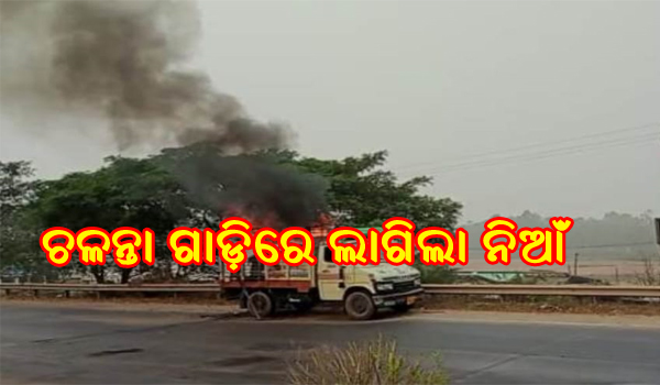 ଚଳନ୍ତା ମାଲବାହୀ ଗାଡ଼ିରେ ଲାଗିଲା ନିଆଁ