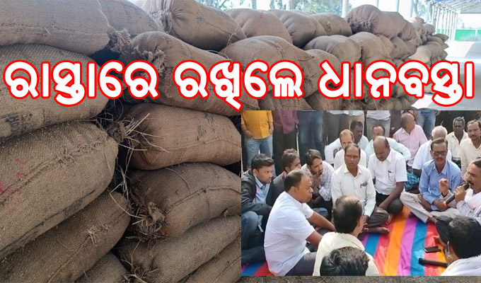 ରାଜରାସ୍ତାରେ ଧାନବସ୍ତା ପକାଇ ଆନ୍ଦୋଳନରେ ବସିଲେ ଚାଷୀ