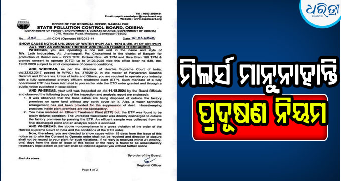 ମିଲର୍ସ ମାନୁନାହାନ୍ତି ପ୍ରଦୂଷଣ ନିୟମ: ପ୍ରଦୂଷଣ ବୋର୍ଡ଼ର ଭୂମିକାକୁ ନେଇ କଳ୍ପନାଜଳ୍ପନା