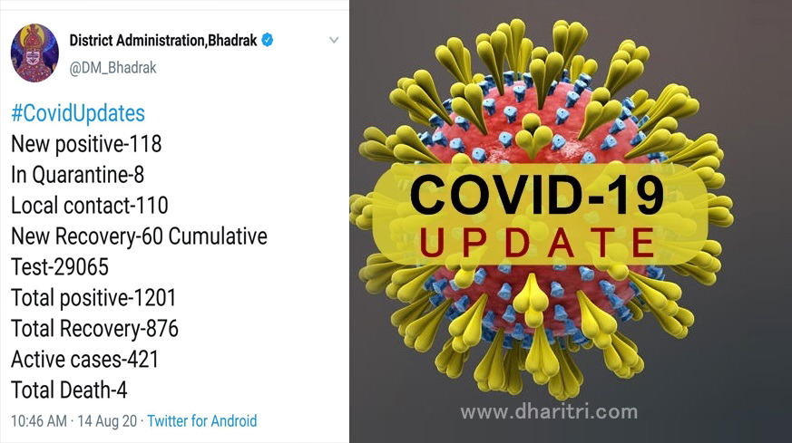 ଭଦ୍ରକରେ ୧୨୦୦ ଟପିଲା କରୋନା ଆକ୍ରାନ୍ତଙ୍କ ସଂଖ୍ୟା, ଆଜି ୧୧୮ ପଜିଟିଭ୍ ଚିହ୍ନଟ