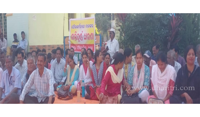 ଧାରଣାରେ ବସିଲେ ପୌରପାଳିକା କର୍ମଚାରୀ