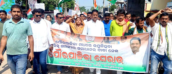 ପୌରକାର୍ଯ୍ୟାଳୟ ଘେରିଲେ କଂଗ୍ରେସ ନେତା