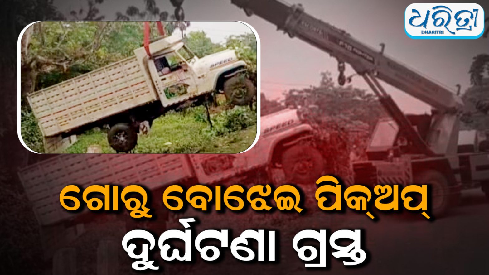 ଗୋରୁ ବୋଝେଇ ପିକ୍ଅପ୍ ଭ୍ୟାନ୍ ଦୁର୍ଘଟଣାଗ୍ରସ୍ତ, ୩ ଗୋରୁ ମୃତ