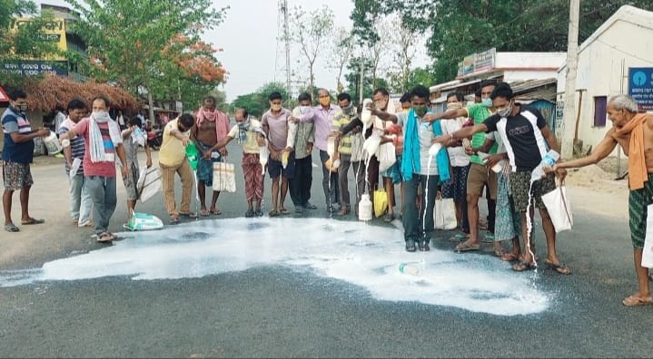 ଲକ୍ଡାଉନର ପ୍ରଭାବ: ବିକ୍ରି ନ ହେବାରୁ ରାଜରାସ୍ତାରେ ଢ଼ାଳିଲେ କ୍ଷୀର