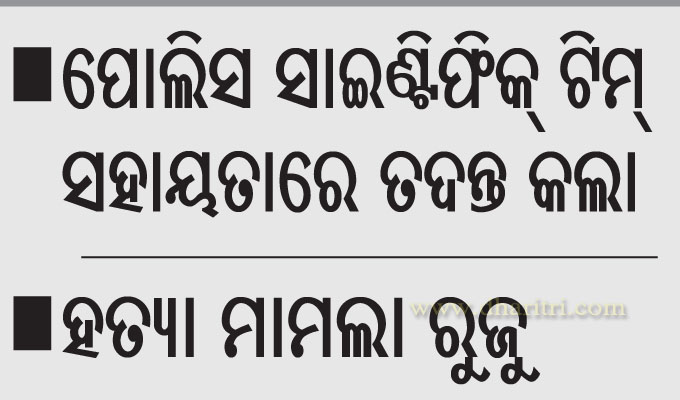 ମଙ୍ଗୁଳି-ଜଗତପୁର,୨୨ା୬(ମାନସ ସାମଲ)ଜଗତପୁର ଥାନା ଅଧୀନ ତ୍ରିନାଥ ସାହିସ୍ଥିତ ଏକ ଚା’ ଦୋକାନରେ ଜଣେ ମହିଳାଙ୍କୁ ହାଣି ହତ୍ୟା କରାଯାଇଛି। ସେ ହେଲେ ତ୍ରିନାଥ ସାହିର କବିତା ବେହେରା। ବୁଧବାର ସକାଳେ ଖବରପାଇ ଜୋନ-୧ ଏସିପି ଅରୁଣ କୁମାର ସ୍ବାଇଁ, ଥାନା...