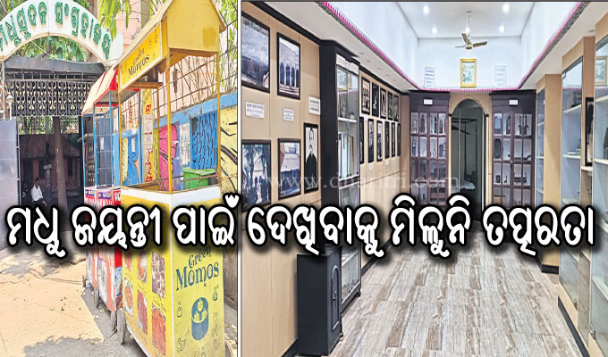 କଟକ ଅଫିସ,୨୮ା୪: ଶୁକ୍ରବାର ମଧୁବାବୁଙ୍କ ଜୟନ୍ତୀ। ଏଥିପାଇଁ ପ୍ରଶାସନ ପକ୍ଷରୁ ବ୍ୟାପକ ପ୍ରସ୍ତୁତି କରାଯାଇଛି। ହେଲେ ତାଙ୍କ ସ୍ମୃତିରେ ନିର୍ମାଣ କରାଯାଇଥିବା କଟକ ଚଣ୍ଡୀଛକସ୍ଥିତ ମଧୁସୂଦନ ସଂଗ୍ରହାଳୟ ଏବେ ଅସ୍ଥିତ୍ୱ ହରାଇବାରେ ଲାଗିଛି। ରାତି ପାହିଲେ ଜୟନ୍ତୀ, ହେଲେ ଗୁରୁବାର...
