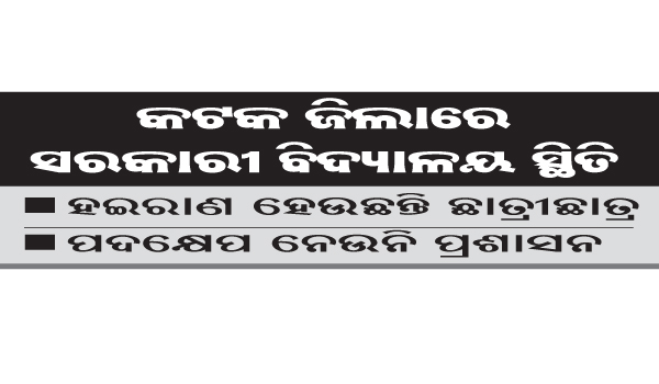 କଟକ ଅଫିସ,୪ା୪: ଯୋଜନା ପରେ ଯୋଜନା ହେଉଛି, ତଥାପି ସରକାରୀ ବିଦ୍ୟାଳୟଗୁଡ଼ିକର ଭିତ୍ତିଭୂମି ସଜଡ଼ା ହୋଇପାରୁନାହିଁ। ‘ମୋ ସ୍କୁଲ’ ପରି ଯୋଜନା ମାଧ୍ୟମରେ ପୂର୍ବତନ ଛାତ୍ରୀଛାତ୍ରଙ୍କୁ ସ୍କୁଲ ବିକାଶରେ ସାମିଲ କରାଗଲା। ସରକାର ବି ଅର୍ଥ ଯୋଗାଇଲେ। ତା’ପରେ ବି...