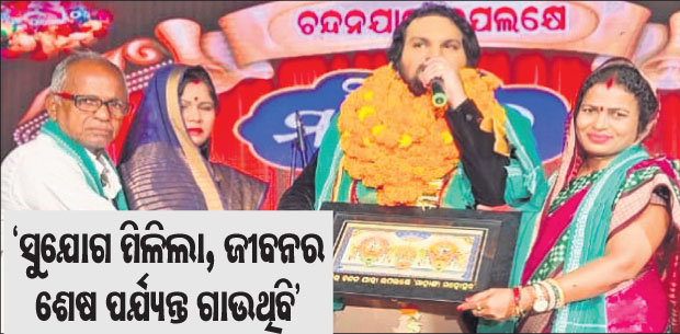 ନିଶ୍ଚିନ୍ତକୋଇଲି, ୨୪ା୫(ସ୍ବ.ପ୍ର): ବିବାଦ ପରେ କଣ୍ଠଶିଳ୍ପୀ ହ୍ୟୁମାନ ସାଗର ରବିବାର ରାତିରେ କଟକ ଜିଲା ନିଶ୍ଚିନ୍ତକୋଇଲି ବ୍ଲକ ଜିଗ୍ନିପୁରସ୍ଥିତ ବ୍ରହ୍ମକ୍ଷେତ୍ର ପୀଠରେ ଚାଲିଥିବା ମାହାଙ୍ଗା ମହୋତ୍ସବରେ ପ୍ରଥମ ଜଗନ୍ନାଥ ଭଜନ ଗାଇଛନ୍ତି। ଏହି ଅବସରରେ ସେ ‘ଦଣ୍ଡବତ ହେଲି ତୋରି...