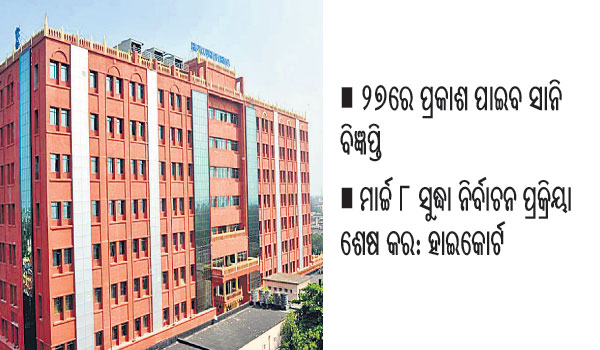 କଟକ ଅଫିସ,୨୩ା୧୨: ପଞ୍ଚାୟତ ନିର୍ବାଚନ ପାଇଁ ଜାରି ହୋଇଥିବା ସଂରକ୍ଷଣ ସମ୍ପର୍କିତ ବିଜ୍ଞପ୍ତିକୁ ରାଜ୍ୟ ସରକାର ପ୍ରତ୍ୟାହାର କରିବେ। ଏଥିସହିତ ସଂରକ୍ଷଣ ସମ୍ପର୍କିତ ଏକ ସାନି ବିଜ୍ଞପ୍ତି ଡିସେମ୍ବର ୨୭ସୁଦ୍ଧା ଜାରି କରିବାକୁ ହାଇକୋର୍ଟ ରାଜ୍ୟ ସରକାରଙ୍କୁ ନିର୍ଦ୍ଦେଶ ଦେଇଛନ୍ତି।...
