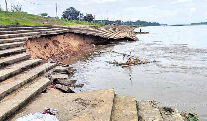 କଟକ,୨୨ା୯(ସୁପ୍ରିୟା ପ୍ରିୟଦର୍ଶିନୀ): ମହାନଦୀ କୂଳରେ ଗଡ଼ଗଡ଼ିଆ ଘାଟରେ ନିର୍ମାଣ ହୋଇଥିବା କେତେକ ପାହାଚ ଧସିଯାଇଥିବା ଦେଖିବାକୁ ମିଳିଛି। ମାଟି ଧସିବା ଯୋଗୁ ସିମେଣ୍ଟ ନିର୍ମିତ ପାହାଚ ଭୁଶୁଡ଼ି ସେଠାରେ ଏକ ବଡ଼ ଗର୍ତ୍ତ ସୃଷ୍ଟି ହୋଇଛି। ନିମ୍ନମାନର କାମ ନଚେତ...