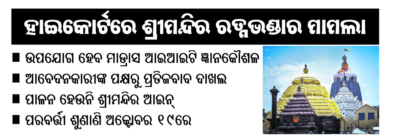 କଟକ,୧୯ା୯ (କାର୍ତ୍ତିକ ସାହୁ):ପୁରୀ ଶ୍ରୀମନ୍ଦିରର ରତ୍ନଭଣ୍ଡାର ମରାମତି ଆସନ୍ତା ଅକ୍ଟୋବର ୧୫ରୁ ଆରମ୍ଭ କରିବାକୁ ହାଇକୋର୍ଟ ସୋମବାର ନିର୍ଦ୍ଦେଶ ଦେଇଛନ୍ତି। ଏଥିପାଇଁ ଆବଶ୍ୟକ ଜ୍ଞାନକୌଶଳ ମାଡ୍ରାସ୍ ଆଇଆଇଟିରୁ ଅଣାଯିବା ସହ କିଏ କାମ କରିବ ସେ ନେଇ ଅକ୍ଟୋବର ୧୫...