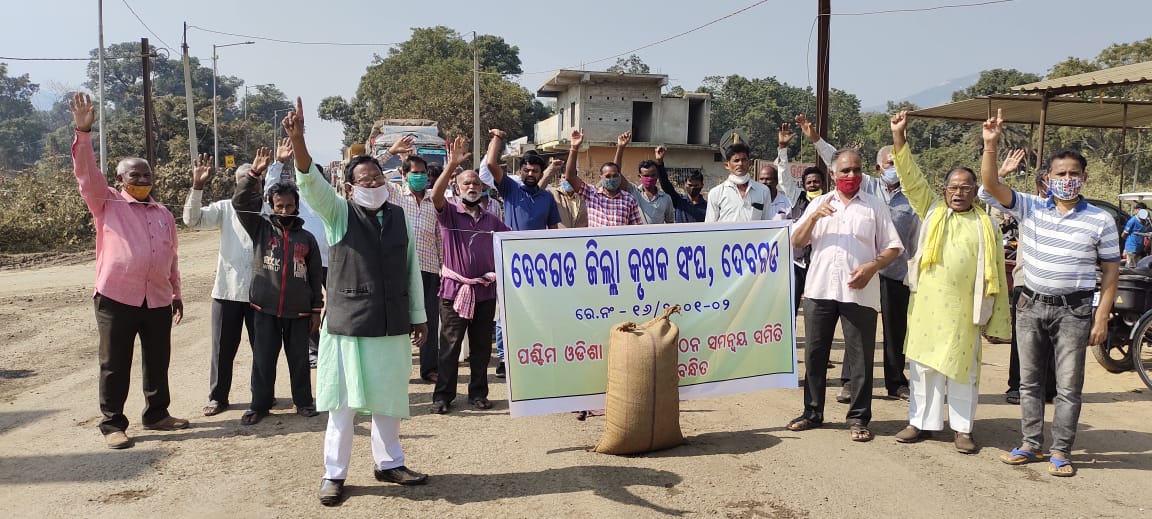 ଦେବଗଡ,୬ା୧୨(ଡ଼ି.ଏନ୍.ଏ.)- ପଶ୍ଚିମ ଓଡିଶା କୃଷକ ସଙ୍ଗଠନର ଆହ୍ବାନ କ୍ରମେ କେନ୍ଦ୍ର ସରକାରଙ୍କ ନୂତନ କୃଷିନୀତିର ଦୃଢ ପ୍ରତିବାଦ କରାଯିବା ସହ ଚାଷୀଙ୍କର ବିଭିନ୍ନ ସମସ୍ୟାର ସମାଧାନ ଦାବିରେ ଶନିବାର ଦେବଗଡ ଜିଲା କୃଷକ ସଂଘ ପକ୍ଷରୁ ରାସ୍ତାରୋକୋ ଆନ୍ଦୋଳନ କରାଯାଇଥିଲା...