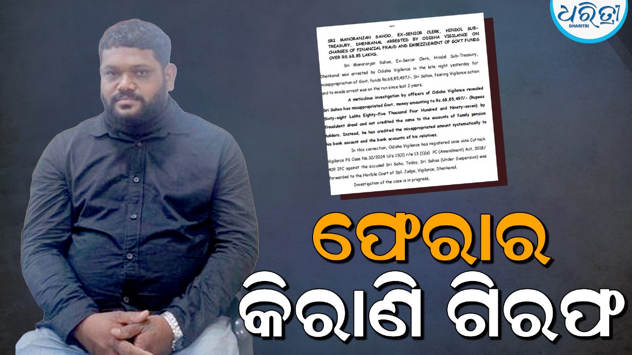 ୨ ବର୍ଷ ହେଲା ଫେରାର କିରାଣିଙ୍କୁ ଗିରଫ କଲା ଭିଜିଲାନ୍ସ