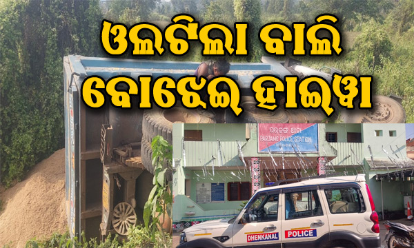 ରାସ୍ତା ତଳକୁ ଓଲଟିପଡିଲା ବାଲି ବୋଝେଇ ହାଇୱା, ଭିତରେ ଥିଲେ ଡ୍ରାଇଭର, ତା’ପରେ…