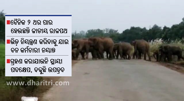 ଢେଙ୍କାନାଳ ଅଫିସ, ୩୦।୯: ଢେଙ୍କାନାଳ ଜିଲା ସଦର ରେଞ୍ଜ୍ ଓଡ଼ାପଡ଼ା ବ୍ଲକର ହଳଦିଆବାହାଳ ପାଲଟିଛି ହାତୀଙ୍କ ଚରାଭୂଇଁ। ଅଞ୍ଚଳ ଦେଇ ଯାଇଥିବା ୫୫ନଂ. ଜାତୀୟ ରାଜପଥକୁ ଦୈନିକ ଦୁଇଥର ହାତୀ ପାର୍ ହେଉଛନ୍ତି। ହାତୀଙ୍କ ସମାଗମ ଦେଖିବାକୁ ପଥଚାରୀ ଭିଡ଼ ଲଗାଉଥିବାବେଳେ...