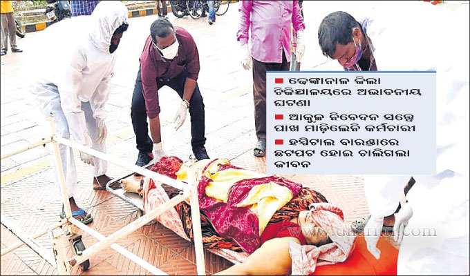 ଢେଙ୍କାନାଳ ଅଫିସ,୮।୫: କରୋନା ସଂକ୍ରମିତ ବୋଲି କେହି ପାଖ ମାଡ଼ିଲେନି। ଜୀବନ ଭୟରେ ଲୁଚିଲେ କୋଭିଡ୍ ଯୋଦ୍ଧା। ବହୁକଷ୍ଟରେ ହସ୍ପିଟାଲ ଯାଏ ଆସିଥିଲେ ହେଁ ଶଯ୍ୟା ପର୍ଯ୍ୟନ୍ତ ନେବାକୁ ପହଞ୍ଚତ୍ଲାନି କାହାରି ସହାୟତାର ହାତ। ଫଳରେ ଛଟପଟ ହୋଇ ଚାଲିଗଲା...