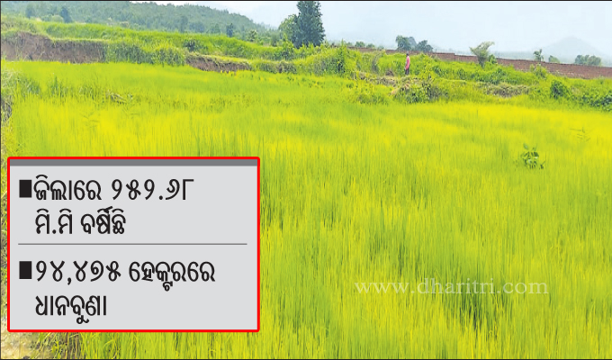 ଢେଙ୍କାନାଳ,୩ା୭(ରତନ ନାୟାର): ମୌସୁମୀ ବାୟୁ ପ୍ରବାହରେ ଢେଙ୍କାନାଳ ଜିଲାରେ ଜୁନ୍ରେ ଭଲ ବର୍ଷା ହୋଇଛି। ଚାଷ ପାଇଁ ପାଗ ଅନୁକୂଳ ଥିବାରୁ ଧାନ ବୁଣା ଜୋର୍ ଧରିଛି। ହାତୀ ଉପଦ୍ରବ ରୋକାଯାଇପାରିଲେ ଭଲ ଧାନ ଉତ୍ପାଦନ ହେବ ବୋଲି ଚାଷୀମାନେ...