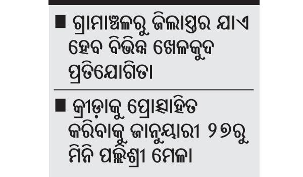 ଢେଙ୍କାନାଳ ଅଫିସ, ୧୪।୧୨: ହକି ବିଶ୍ୱକପ୍କୁ ଲୋକପ୍ରିୟ କରାଇବା ଲାଗି ପ୍ରସ୍ତୁତି ଆରମ୍ଭ କରିଛି ଢେଙ୍କାନାଳ ଜିଲା ପ୍ରଶାସନ। କ୍ରୀଡ଼ାକୁ ପ୍ରୋତ୍ସାହିତ କରିବା ଲକ୍ଷ୍ୟରେ ଜାନୁୟାରୀ ୨୭ରୁ ୨୯ ଯାଏ ମିନି ପଲ୍ଲିଶ୍ରୀ ମେଳାର ଆୟୋଜନ କରାଯିବ। ଏଥିସହ ଗ୍ରାମାଞ୍ଚଳରୁ...
