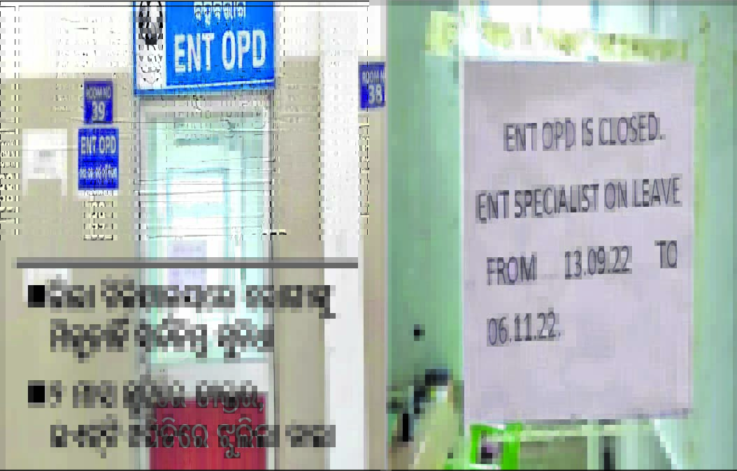 ଢେଙ୍କାନାଳ ଅଫିସ, ୨୩।୯: ‘ଇଏନ୍ଟି ଓପିଡି ଇଜ୍ କ୍ଲୋଜଡ୍। ଇଏନ୍ଟି ସ୍ପେଶାଲିଷ୍ଟ ଅନ୍ ଲିଭ୍ ଫ୍ରମ୍ 13।9।2022 ଟୁ 6।11।2022’। ଏଭଳି ଲେଖାଥିବା ଏକ ନୋଟିସ ଲଗାଇ କର୍ଣ୍ଣ, ନାସା, ଗଳା ବିଭାଗର ଓପିଡିରେ ତାଲା ଝୁଲାଇ ଦେଇଛନ୍ତି ଢେଙ୍କାନାଳ...