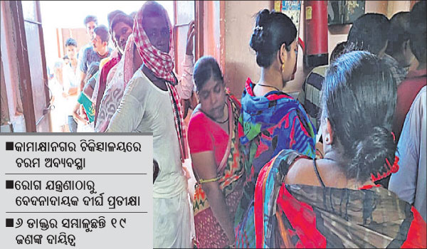 କାମାକ୍ଷାନଗର, ୩ା୯(ଡି.ଏନ୍.ଏ.): ଡାକ୍ତରଙ୍କୁ ଜଣାଇବେ ସ୍ବାସ୍ଥ୍ୟ ସମସ୍ୟା। ଏହି ଆଶାରେ ରାତି ନ ପାହୁଣୁ ଡାକ୍ତରଖାନାକୁ ଛୁଟୁଛନ୍ତି ରୋଗୀ। ଡାକ୍ତରଙ୍କ ଚ୍ୟାମ୍ବର ପାଖରୁ ସ୍ବାସ୍ଥ୍ୟକେନ୍ଦ୍ର ବାହାର ଯାଏ ଲମ୍ବୁଛି ଲାଇନ୍। ଧାଡ଼ିରୁ ବାହାରିଗଲେ ସେହି ଜାଗା କାଳେ ଆଉ କିଏ...